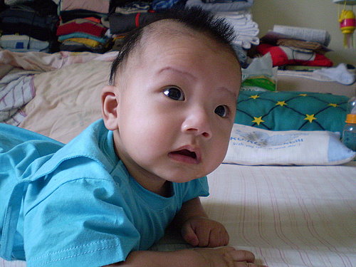 翻來覆去的讓我很不捨也很心疼為娘的我只好把他往懷裡抱