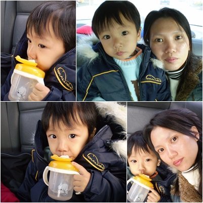 麻麻在車上無聊玩自拍,而我是還沒完全睡醒一臉呆滯