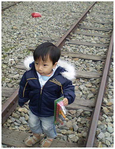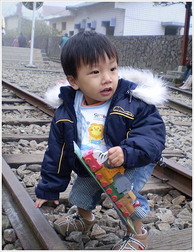 買了小火車當然要在鐵軌上走走跳跳拍張照囉