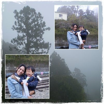 瞧山上的天氣有多糟都霧茫茫的好冷喔