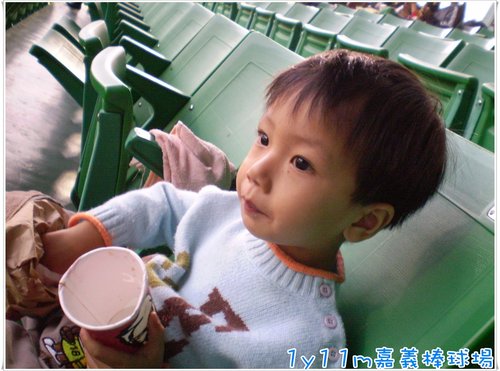 第一次到球場看球的康康老實說算是挺乖的,球賽還沒開始之前能乖乖的坐在位子上