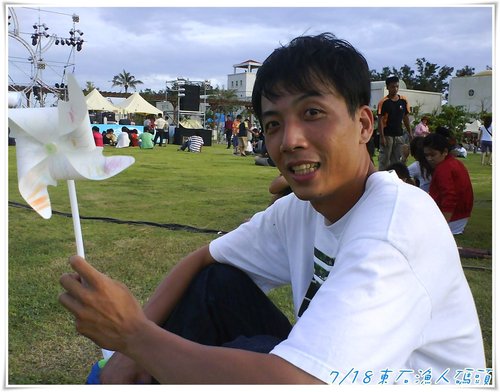 很辛苦的康拔風箏一直沒法順利飛上天只好拿風車過過癮囉