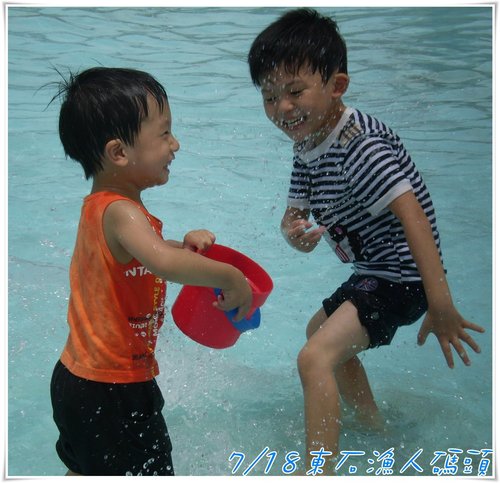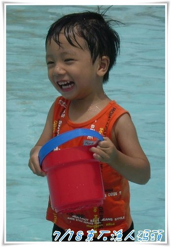 小孩子就是小孩子有水可玩,太陽再怎麼大也不怕