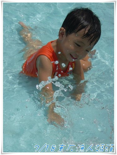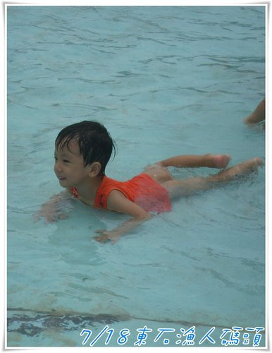 姿勢不錯唷可以叫拔拔帶你去學游泳囉