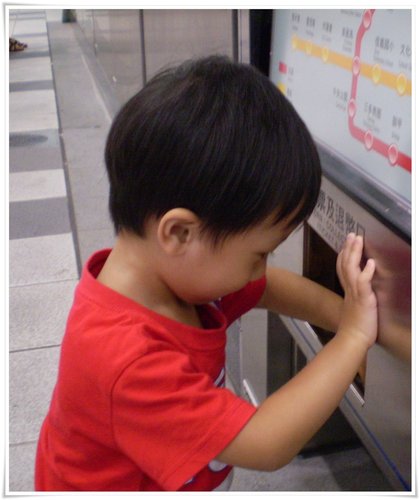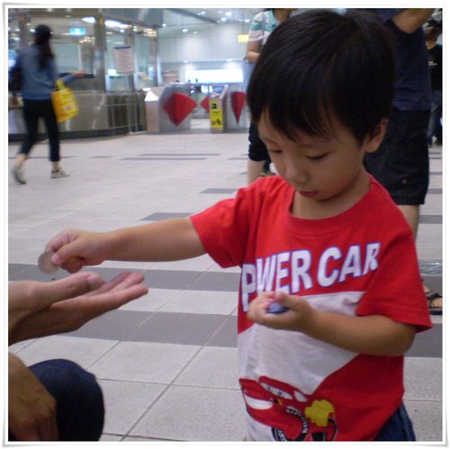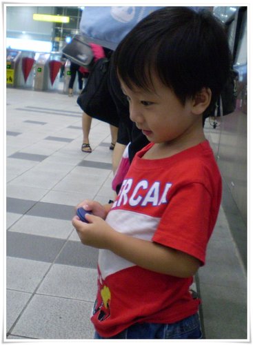 等康拔拿到票了,康康一路上就拿著那類似10元硬幣的票,高興的等待捷運囉