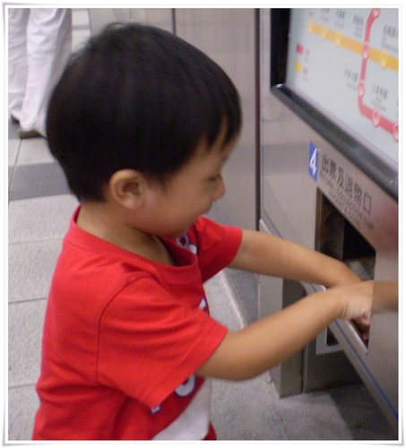 康康自從第一天看到康拔投錢買票後,再來的幾次就吵著要自己買
