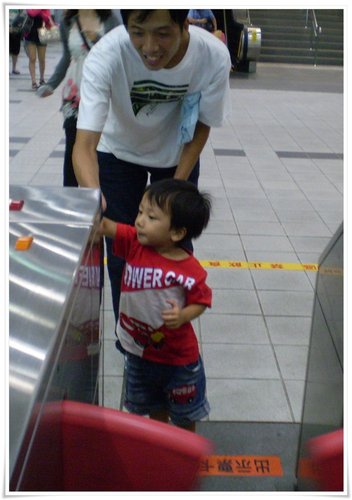 第一次看到捷運的康康很興奮的一直嘰嘰喳喳的,兩個大眼睛咕嚕咕嚕很好奇的看來看去