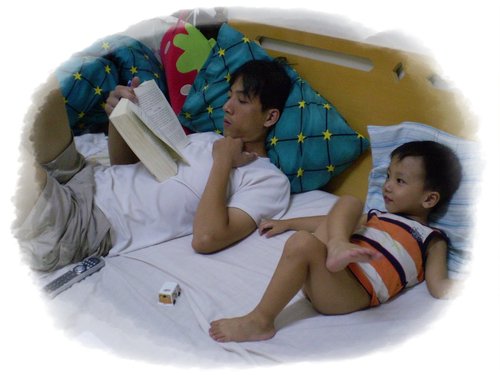 下面三連發是康康學拔拔翹二郎腿的樣子,還真的是有模有樣呢